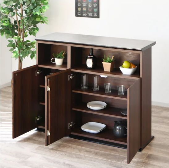 壁際にすっきりと収まるスリムなコンソールタイプから、食器や家電を収納できるキャビネットを兼ね備えたタイプ、さらには折りたたみ式の天板が付いた省スペースタイプまで、様々なデザインとサイズが揃っているのが最大の魅力です。