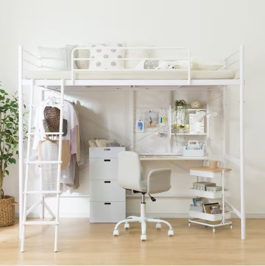 IKEAが展開するロフトベッドは、その卓越したデザイン性の高さから、子供部屋という枠を超えて、ミニマルな暮らしを目指す大人の一人暮らしの部屋にも絶大な人気を誇っています。